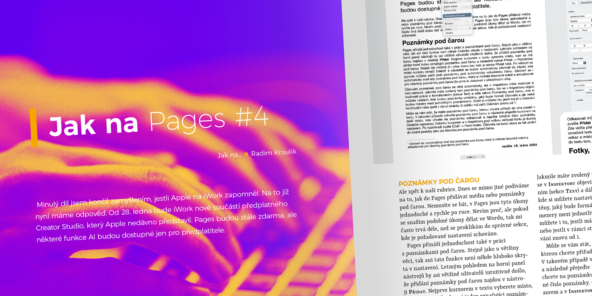 Ale zpět k naší rubrice. Dnes se mimo jiné podíváme na to, jak do Pages přidávat média nebo poznámky pod čarou. Nemusíte se bát, v Pages jsou tyto úkony jednoduch . . .