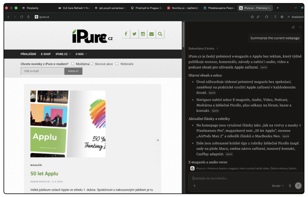 Ve zkratce máte na Macu nejjednodušší ovládání (postranní panel + klávesové zkratky + pokročilý Voice Mode), zatímco na iOS/iPadOS běží Comet jako vlastní prohlížeč, ale v každé verzi vždy najdete stejného asistenta – textového i hlasového, navázaného přímo na stránku, na kterou se právě díváte.