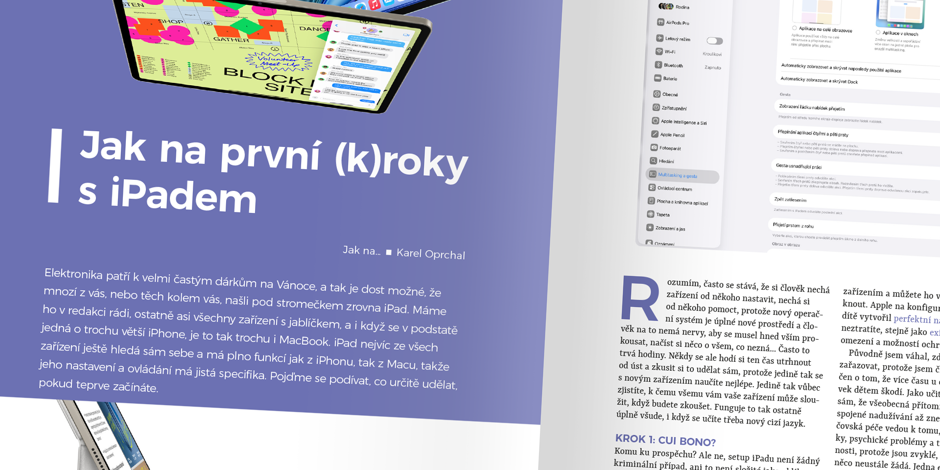 Elektronika patří k velmi častým dárkům na Vánoce, a tak je dost možné, že mnozí z vás, nebo těch kolem vás, našli pod stromečkem zrovna iPad. Máme ho v redakci rádi, ostatně asi všechny zařízení s jablíčkem, a i když se v podstatě jedná o trochu větší iPhone, je to tak trochu i MacBook. iPad nejvíc ze všech zařízení ještě hledá sám sebe a má plno funkcí jak z iPhonu, tak z Macu, takže jeho nastavení a ovl . . .