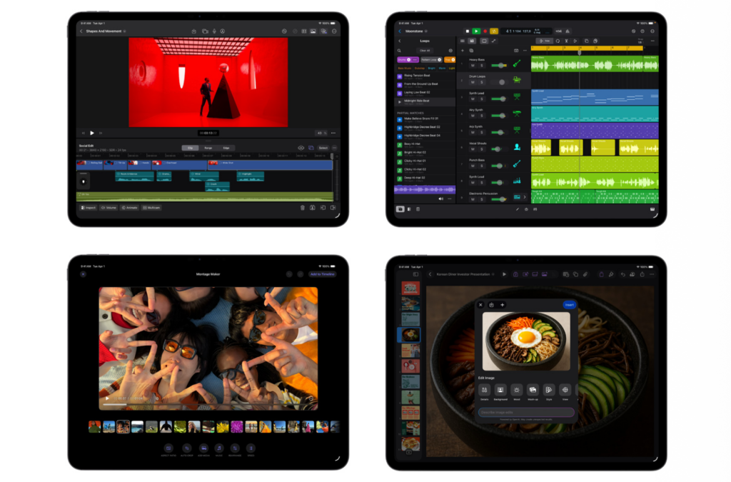 V aktuální podobě zahrnuje Creator Studio profesionální video aplikace Final Cut Pro, Motion a Compressor, hudební Logic Pro a MainStage, grafický Pixelmator Pro, a navíc kancelářské aplikace Pages, Numbers a Keynote rozšířené o nové funkce AI. Apple zároveň avizuje zařazení Freeform, a sjednocuje tak kreativní i „kancelářskou“ práci do jednoho ekosystému.