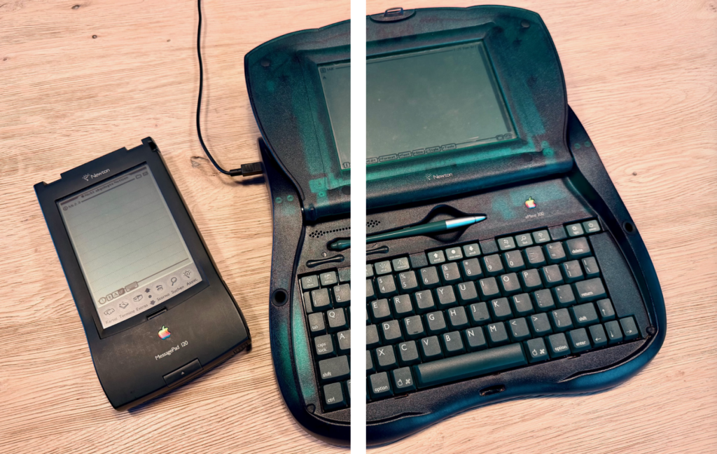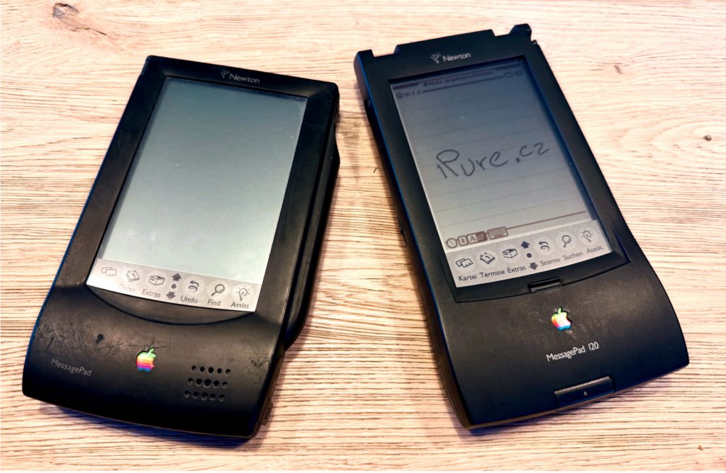 Když Newton konečně dorazil na trh (1993), Apple jej uvedl pod značkou MessagePad. V průběhu let se objevilo několik generací, každá s vlastním charakterem. MessagePad 100 byl první, průkopník. Šlo o robustní, plastové zařízení s monochromatickým LCD a ikonickým stylusem. Jeho doménou měl být rukopis: uživatel „přirozeně“ píše a přístroj rozpoznává znaky. Jenže realita byla mnohem vzdálenější ideálu, než Apple doufal. Rozpoznávání rukopisu se rychle stalo terčem posměchu, byť se v pozdějších modelech dramaticky zlepšilo.