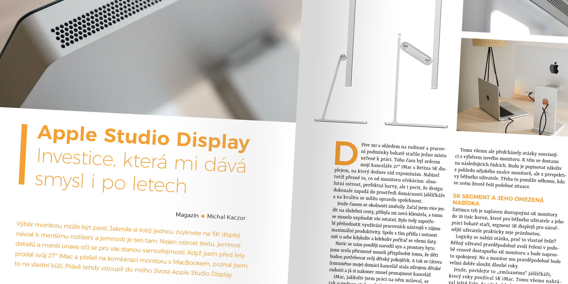Výběr monitoru může být pastí. Jakmile si totiž jednou zvyknete na 5K displej, návrat k menšímu rozlišení a jemnosti je ten tam. Nejen ostrost textu, jemnost detailů a menší únava očí se pro vás stanou samozřejmostí. Když jsem před lety prodal svůj 27" iMac a přešel na kombinaci monitoru s MacBookem, poznal jsem to na vlastní kůži. Právě tehdy vstoupil do mého života Apple Studio Display.