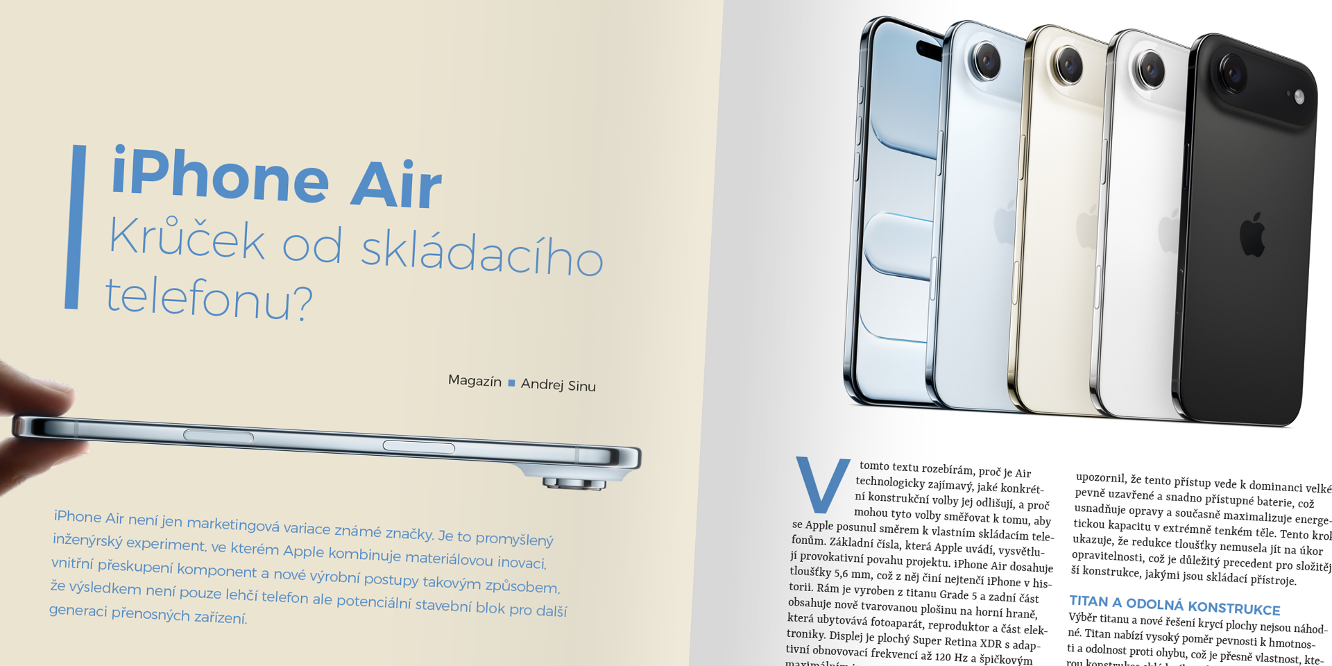 iPhone Air není jen marketingová variace známé značky. Je to promyšlený inženýrský experiment, ve kterém Apple kombinuje materiálovou inovaci, vnitřní přeskupení komponent a nové výrobní postupy takovým způsobem, že výsledkem není pouze lehčí telefon ale potenciální stavební blok pro další generaci přenosných zařízení. V tomto textu rozebírám, proč je Air technologicky zajímavý, jaké konkrétní konstrukční volby jej odlišují, a proč mohou tyto volby směřovat k tomu, aby se Apple posunul směrem k vlastním skl . . .