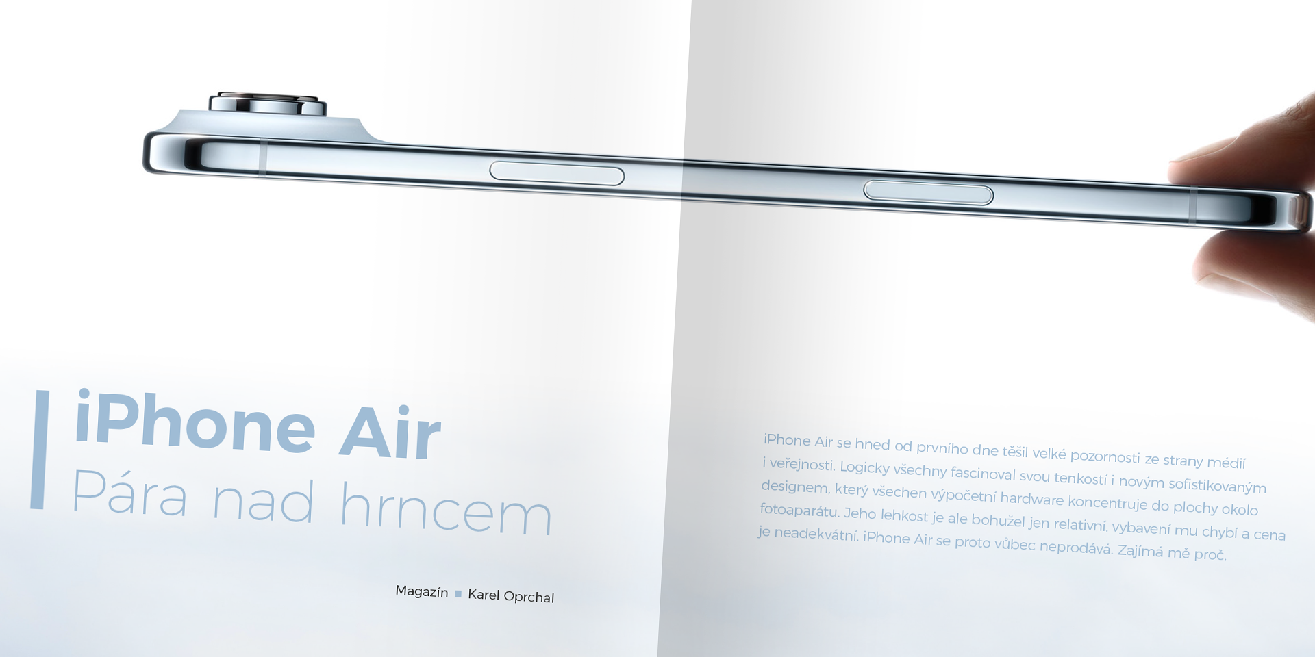 iPhone Air se hned od prvního dne těšil velké pozornosti ze strany médií i veřejnosti. Logicky všechny fascinoval svou tenkostí i novým sofistikovaným designem, který všechen výpočetní hardware koncentruje do plochy okolo fotoaparátu. Jeho lehkost je ale bohužel jen relativní, vybavení mu chybí a cena je neadekvátní. iPhone Air se proto vůbec neprodává. Zajímá mě proč.