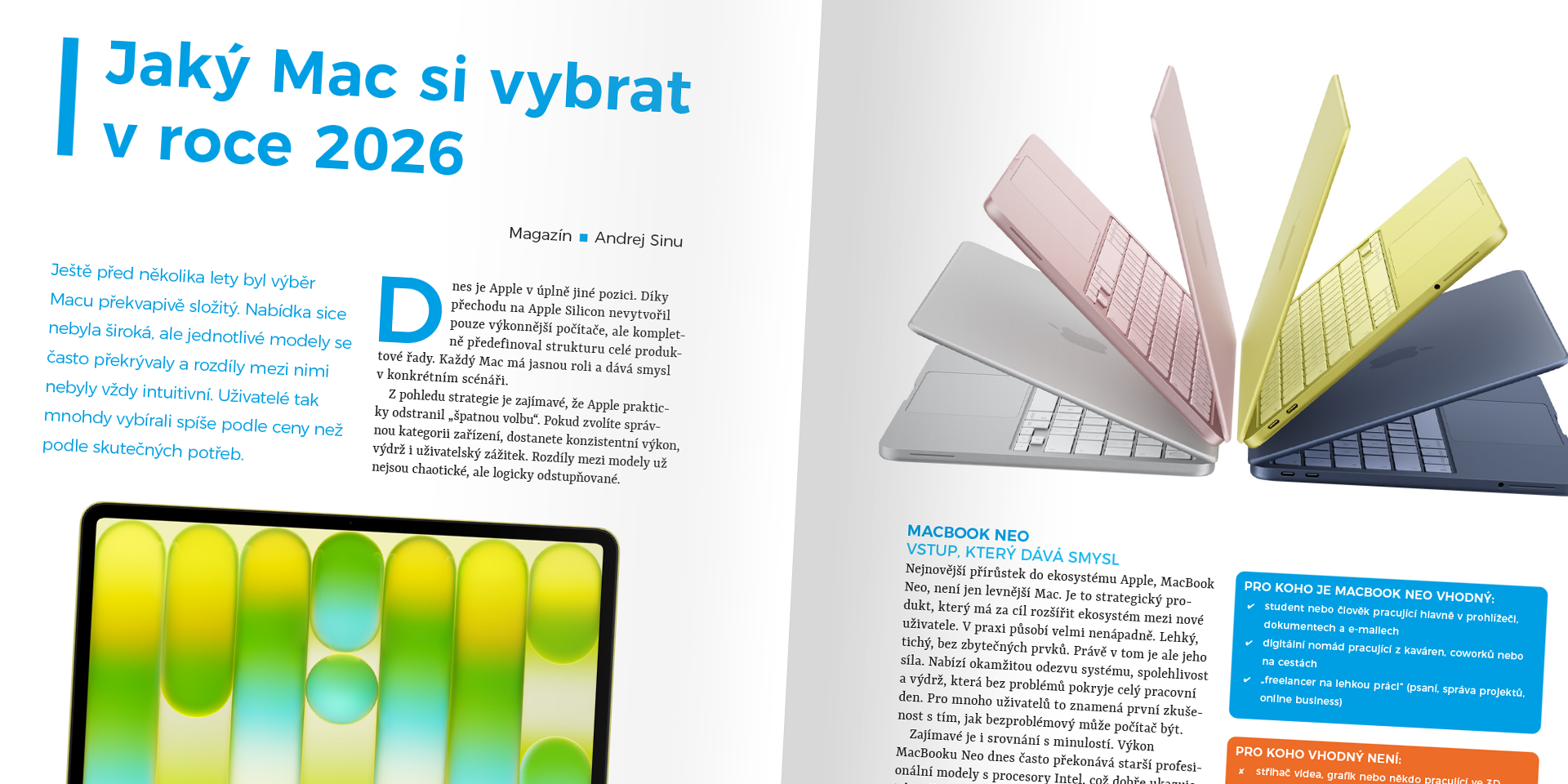 Ještě před několika lety byl výběr Macu překvapivě složitý. Nabídka sice nebyla široká, ale jednotlivé modely se často překrývaly a rozdíly mezi nimi nebyly vždy intuitivní. Uživatelé tak mnohdy vybírali spíše podle ceny než podle skutečných potřeb. Dnes je Apple v úplně jiné pozici. Díky přechodu na Apple Silicon nevytvořil pouze výkonnější počítače, ale kompletně předefinoval strukturu celé produktové řady. Každý Mac má jasnou roli a dává smysl v konkrétním . . .