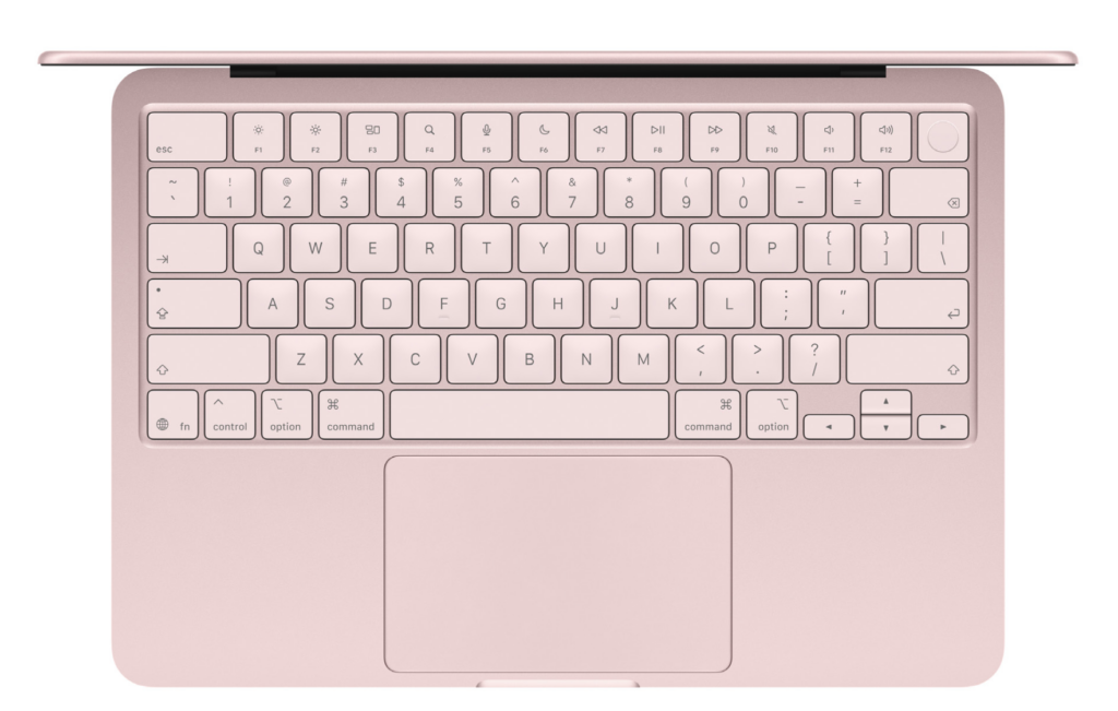 Apple zároveň vsadil na výraznější barvy. Notebook je dostupný ve čtyřech variantách: stříbrná, indigo, ruměná, citrusově žlutá. Klávesnice je navíc barevně sladěná s tělem zařízení, což MacBooku Neo dodává svěží a mladší vzhled.