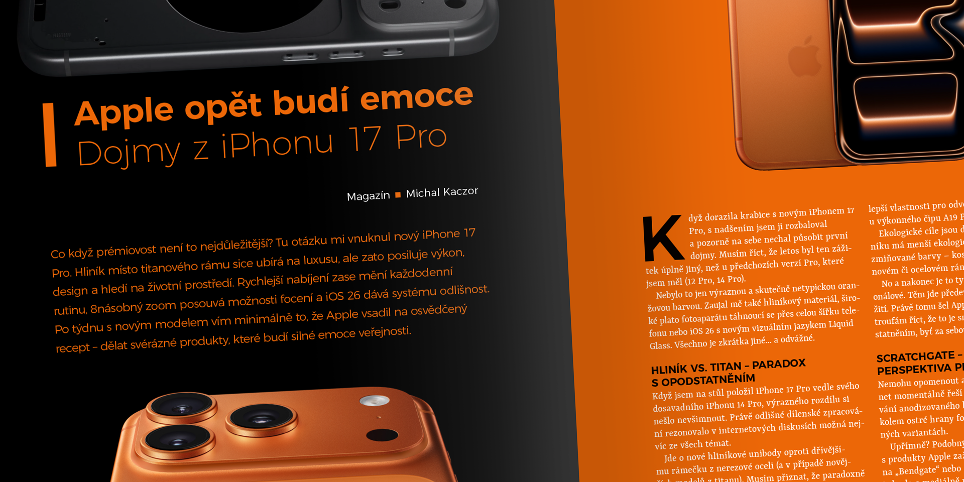 Co když prémiovost není to nejdůležitější? Tu otázku mi vnuknul nový iPhone 17 Pro. Hliník místo titanového rámu sice ubírá na luxusu, ale zato posiluje výkon, design a hledí na životní prostředí. Rychlejší nabíjení zase mění každodenní rutinu, 8násobný zoom posouvá možnosti focení a iOS 26 dává systému odlišnost. Po týdnu s novým modelem vím minimálně to, že Apple vsadil na osvědčený recept – dělat svérázné produkty, které budí silné emoce ve . . .