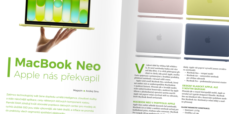 11. číslo letošního roku se primárně věnuje všem novinkám, které Apple na začátku března představil v čele s úplně novým MacBookem Neo. Vsuvku mezi tímto ohlédnutím udělal Michael Vita se svou reportáží z akce, ve které Peak Design spojil síly se Starým Macem. Užijte si nový iPure magazín, a to hned ve třech verzích – designové PDF, interaktivním ePUB a speciálním ePUB pro malé displeje.