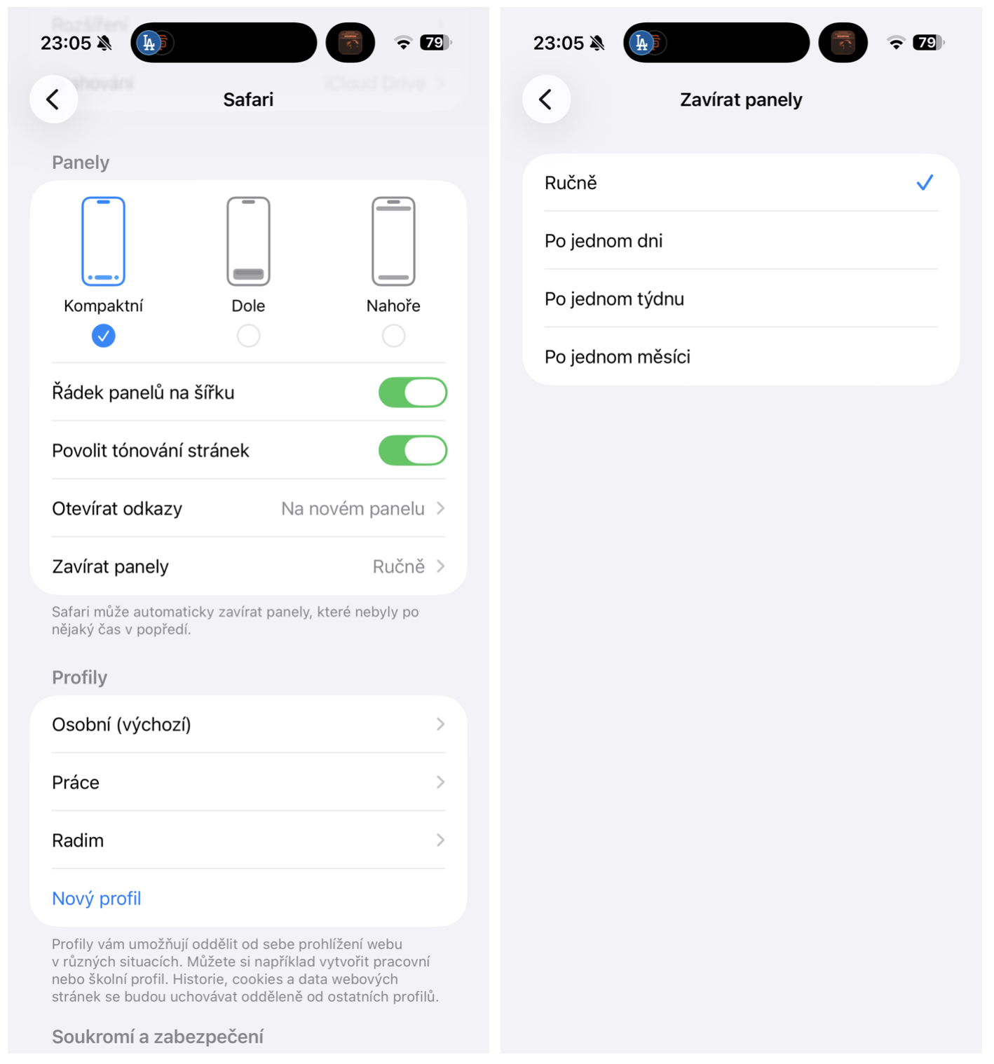 Nastavení Safari umožňuje přistoupit k automatickému zavírání panelů. Na iPhonu a iPadu jděte do Nastavení -> Aplikace -> Safari a v sekci Panely najdete volbu Zavírat panely. Pokud daný panel nebyl vámi zvolený čas v popředí, tak se zavře. Na výběr je interval po jednom dni, týdnu a měsíci.