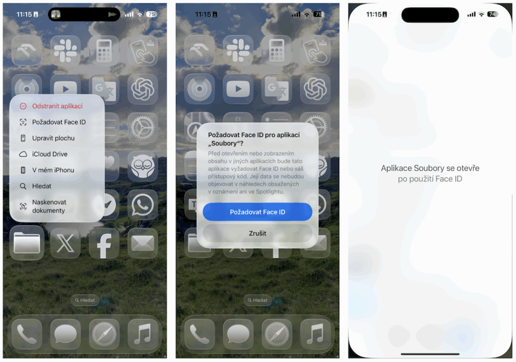 Chcete mít jistotu, že když někomu půjčíte iPhone nebo iPad nebo ho necháte omylem odemknutý na stole, tak se někdo cizí nedostane do konkrétní aplikace? Na ploše nebo v Knihovně aplikací stačí podržet ikonu aplikace, kde se vám zobrazí možnost Požadovat Face ID/Touch ID. Nastavení pak můžete stejnou cestou zrušit. Požadování Face ID nebo přístupového kódu zároveň znamená, že před otevřením nebo zobrazením obsahu v jiných aplikací bude tato aplikace vyžadovat Face ID. Data z aplikace se pak neobjeví například v náhledech ve Spotlightu.