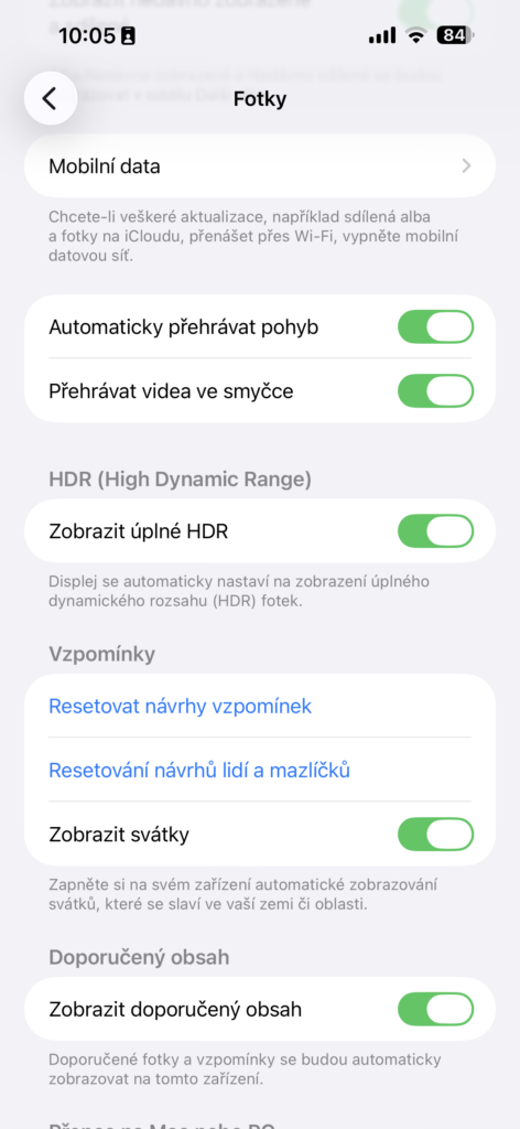 Již od iOS 18 zavedl Apple v aplikaci Fotky automatické přehrávání videí ve smyčce, kdy se po přehrání video neustále spouští znovu od začátku. Toto lze vypnout v Nastavení -> Fotky -> Přehrávat videa ve smyčce. Po vypnutí tohoto nastavení se video vrátí na začátek, ale nespustí se a pro opětovné přehrání je potřeba video ručně pustit.