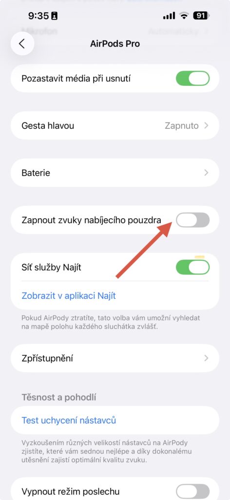 Vadí vám zvuk, který pouzdro AirPods udělá při spuštění nabíjení? Jsou situace, kdy je toto zvukové oznámení nepraktické. Například máte nabíječku na nočním stolku a jdete spát, zatímco vaše drahá polovička již spí. V takovém případě vás asi nepochválí, pokud ji vzbudí zvuk přidání AirPodů na nabíječku. V nastavení lze toto oznámení vypnout. Jakmile máte AirPods v uších, tak jděte do Nastavení -> AirPods a v dolní části se nachází Zapnout zvuky nabíjecího pouzdra. Když budete mít toto nastavení vypnuté, tak pouzdro AirPods již nebude vydávat při připojení k nabíječce žádný zvuk. Informaci o tom, že se pouzdro nabíjí, dostanete prostřednictvím světla stavové kontrolky.