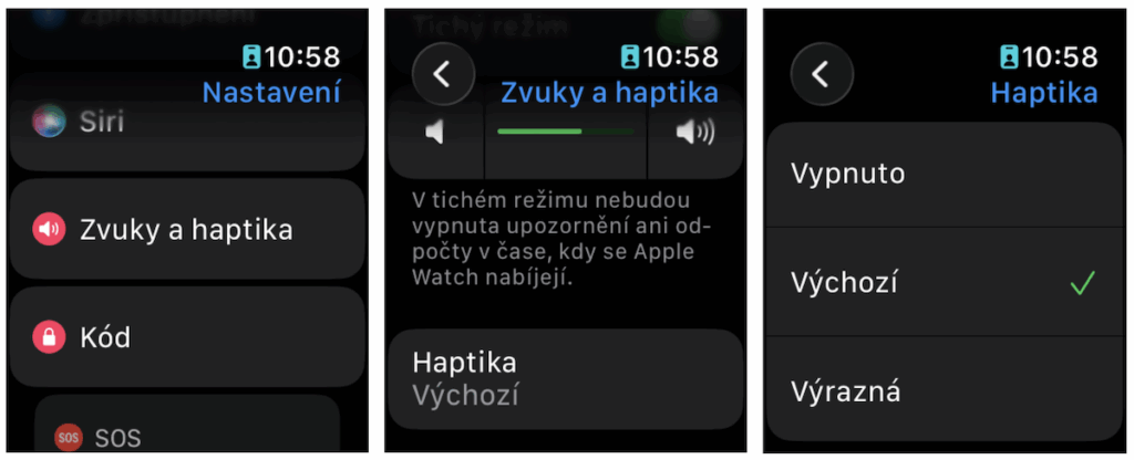 Stává se vám, že necítíte haptickou odezvu na Apple Watch? Osobně se mi stává, že pokud mám přes Apple Watch nataženou mikinu nebo bundu, tak velmi často tuto odezvu necítím nebo naopak si myslím, že jsem dostal oznámení, abych potom zjistil, že se mi to jen zdálo. V sekci Nastavení -> Zvuky a haptika -> Haptika si můžete zvolit mezi možnostmi Vypnuto, Výchozí a Výrazná. Právě výrazná haptika vás na všechna upozornění upomene zesílenou vibrací.